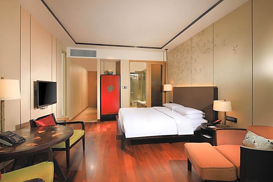 This stylish room offers a king-sized bed with luxurious linens and bedding. The separate bathroom comes with a walk-in shower and a bathtub. This room features access to the Regency Club.
